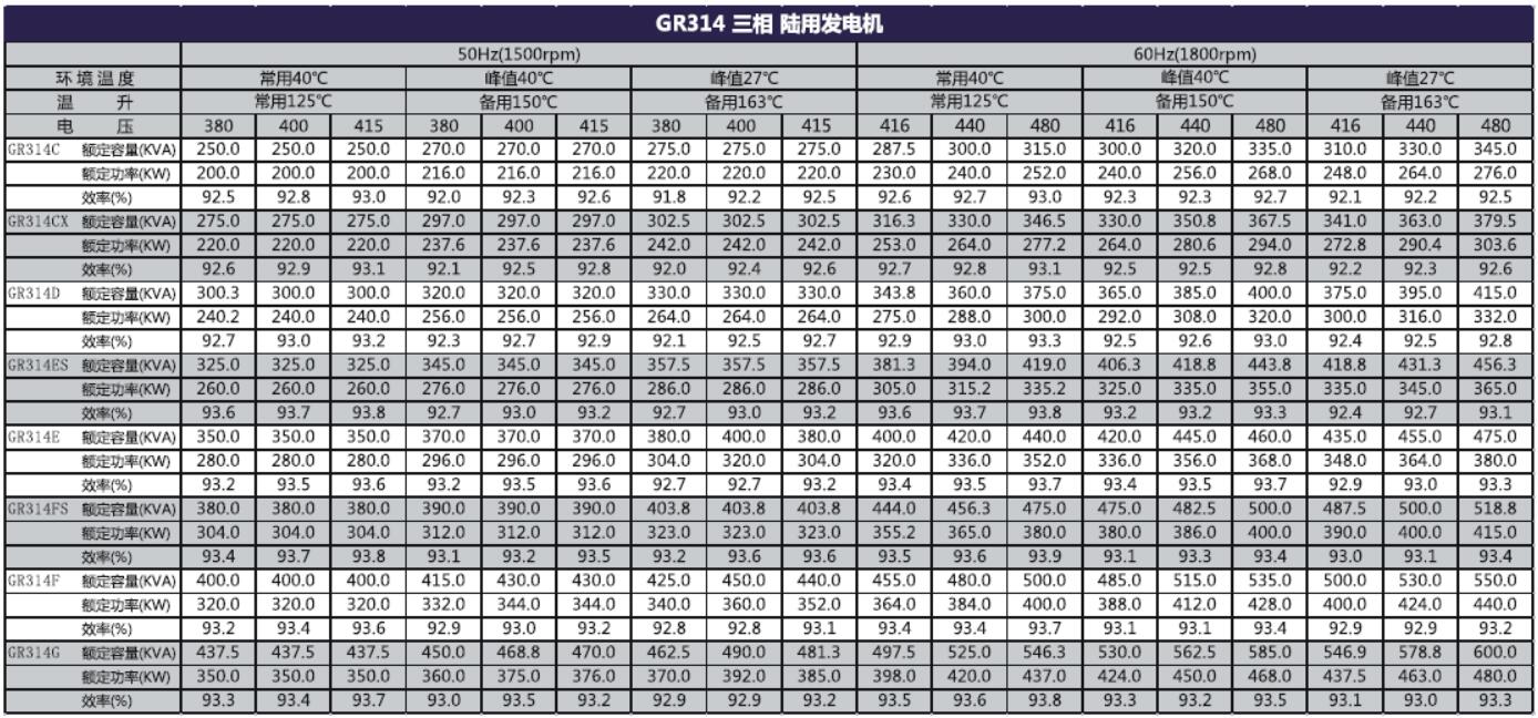 注:所有陆用额定值是基于海拔1000米内,环境温度为40°C。