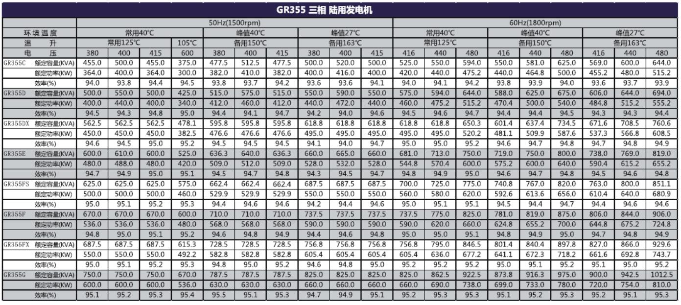 注:所有陆用额定值是基于海拔1000米内,环境温度为40°C。